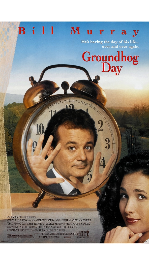 Komedie USA (1993). Film s originálním nápadem a hlavně s bezkonkurenčním Billem Murrayem v roli televizního moderátora, který uvízne spolu se svým štábem v kuriózní časové smyčce.